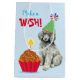 Happy birthday greetings with this cute design featuring a cute, party hat-wearing Standard Poodle puppy with a birthday cupcake. “Happy Birthday” on front and “Make a Wish!” on the back. Text can be easily changed; just click on customize button.