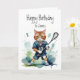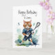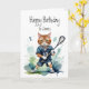 Birthday Custom Name Fun Cute Cat playing Lacrosse Card
