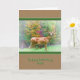 A deer stands in the warmth of the morning sun in front of the forest filled with autumn colours on this greeting card.