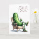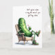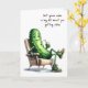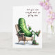 A smiling humanoid pickle wearing green boots and sits in an armchair holding a beverage with a straw.