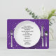 White dinner plate with silverware on on twinkling stars and purple for any age birthday dinner party invite.