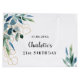 For a 21st (or any age) birthday. A chic white background. Decorated with watercolored eucalyptus greenery, and golden foliage. Personalize and add a date name and age 21. The name is written with a modern hand lettered style script.