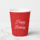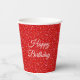Birthday festive confetti on red glitter Paper Cups. Text can be personalized.