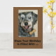 A photograph of a mixed-breed shelter rescue dog, ready to catch a treat in mid-air with an excited look on his face, is the subject of my "Hope Your Birthday Is Filled With Unexpected Treats!" birthday card.