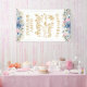 Personalized custom birthday banner sign for any age birthday for her featuring an editable retro script typography design for the number of YEARS IN THE MAKING for her age which incorporates her birth year within the design, floral bouquet borders in colours of blue, pink and white accented with greenery and gold leaves and your custom text. HELP: For assistance with design modification/personalization, colour change, resizing, transferring the design to another product or if you would like coordinating items, contact the designer BEFORE ORDERING via Zazzle Chat or makeitaboutyoustore@gmail.com.