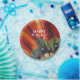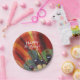 Colorful birthday party paper plate. Flower painting for nature lovers. Orange ,green, yellow painting .