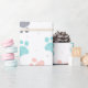This design features pink blue and grey dog paw prints in a seamless pattern over a white background. This is perfect for wrapping dog birthday presents.