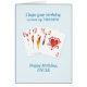 A birthday card for someone who loves to play cards. A royal flush of hearts and the words 'I hope your birthday comes up trumps.' Your uncle will love this birthday card.