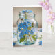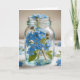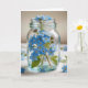 A collection of delicate blue forget-me-not flowers elegantly arranged in a clear glass jar, creating a simple yet captivating display.