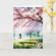 A serene scene features a girl on a swing under a blooming cherry blossom tree surrounded by a peaceful landscape.