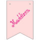 Pretty pink banner for the birthday girl's party. A pink bow on each end with a letter on each flag spelling "Birthday Girl" In between the two words is a flag to add a name to personalize the banner and another flag with an illustration of a cute cartoon girl with blonde hair a blue dress and holding a bunch of flowers. She is also surrounded by butterflies and red love hearts.