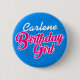 Birthday Girl Pink Typography with NAME on BLUE 2 Inch Round Button