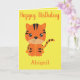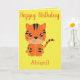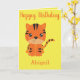 A cute greeting card for a little girl, this design features a cute tiger. "Happy birthday" is written in cursive orange ink with her name at the bottom. On the inside is a lovely message. Order yours today!