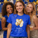For a blue, dark t-shirt. Personalize and add a name and age. White letters. Decorated with golden balloons.