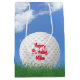 White golf ball in grass with sky background and personalized name for golfer's birthday.
