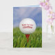 Close-up of golf ball on red tee in green grass for Grandma's birthday.