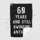 60 years and still swinging, funny 60th birthday quote golf towel. Perfect for dad, grandad, stepdad. Golfer gift idea. You can personalize the year and name.