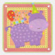 Cute purple hippo with a caterpillar on its back and party hat and balloon.