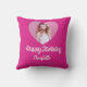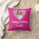 Birthday hot pink photo name script girl throw pillow