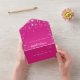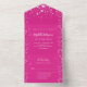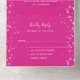 A hot pink background, white stars. Personalize and add a name, party details, RSVP date. The name is written with a hand lettered style script