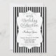 An elegant birthday party invitation in black and silver grey, featuring black and white stripes & silver glitter text frame. The glitter text frame on this classy and classic birthday party invite features a shadow to give a raised appearance. This blue and silver grey invitation is sure to please that special birthday star in your life. Perfect for milestone birthdays such as 18th 20th 21st 30th 35th 40th 45th 50th 55th 60th 65th 70th 75th 80th 85th 90th 95th and 100 ...or any age!