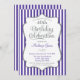 An elegant birthday party invitation in purple and silver grey, featuring purple and white stripes & silver glitter text frame. The glitter text frame on this classy and classic birthday party invite features a shadow to give a raised appearance. This blue and silver grey invitation is sure to please that special birthday star in your life. Perfect for milestone birthdays such as 18th 20th 21st 30th 35th 40th 45th 50th 55th 60th 65th 70th 75th 80th 85th 90th 95th and 100 ...or any age!