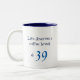 Birthday mug with text "Life deserves a coffee break at 39". Text is very dark blue, and the quite large number is printed in brighter blue. Colours can be customized. Same print on both sides of mug. The age can easily be customized. Even the text can be adjusted. Perhaps the mug owner's life would prefer a tea break? ;) Perfect gift for someone who deserves a celebration, birthday or not.