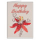 A lovely graphic of a lily rendered in soft corals with the words Happy Birthday above it. The background has the look of a soft coral linen.