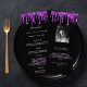 50 & Fabulous birthday party dinner menu card. Personalize and add a name, age, date and the menu. A chic black background, decorated with purple faux glitter drips. Purple coloured letters.