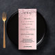 Birthday party menu card. Personalize and add a name, age, date and the menu. Bush pink faux background, decorated with drips. Black colored letters.