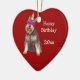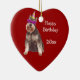 This ornament features a Miniature Schnauzer wearing a party hat. Customizable text is available or delete existing text.