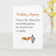 A funny Happy Birthday card, featuring a bad poem and illustration, about Francine The Mystery Cow sending birthday greetings (and the mystery of her name). Our character, tillie, is smiling a bit but looks a little confused while patting Francine's head.