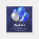A navy blue background with blue and faux silver looking balloons. The blue colour is uneven. Personalize and add a name and age. White letters.