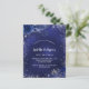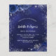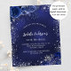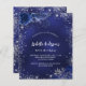 A navy blue background, decorated with faux silver glitter, sparkles and blue florals. The blue colour is uneven. Personalize and add a name and party details.
