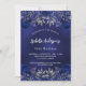 A navy blue background, decorated with blue roses, flowers. The blue colour is uneven. Personalize and add a name and party details.