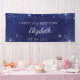 For a girly and glamourous 21st (or any age) birthday party. A navy blue background with elegant faux glitter dust. The blue colour is uneven. Personalize and add a name, date and age 21. White letters. The name is written with a modern hand lettered style script with swashes.