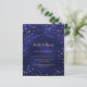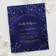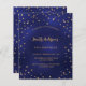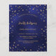 A birthday party invitation for both him and her. A navy blue background decorated with faux gold stars. The blue colour is uneven. Personalize and add a name and party details. Golden coloured text.