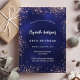 A modern, stylish and glamourous invitation for a 40th (or any age) birthday party. A navy blue background, decorated with rose gold faux glitter, sparkles. The blue colour is uneven. Personalize and add your name and party details.
