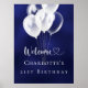 Birthday navy blue white balloons welcome poster