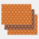 Elegant, trendy party wrapping paper sheets. 2 sheets in burnt orange, and one brown, rusty background, white text.