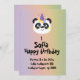 This cute panda bear is celebrating his birthday. This card is ideal for any party or event as it can be personalized.
