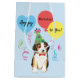 Happy birthday greetings with this cute design featuring a happy, party hat-wearing Beagle puppy surrounded by colourful balloons and streamers. “Happy Birthday, [name]” on front and “Happy Birthday to You!” on back. Name can be easily changed; just click on personalize button.