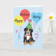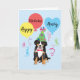 Happy birthday greetings with this cute design a cute, party hat-wearing Bernese Mountain Dog puppy surrounded by colourful balloons and streamers. Name can be easily changed; just click on custome button.