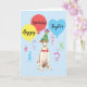 Happy birthday greetings with this cute design featuring a smiling, party hat-wearing Borzoi puppy surrounded by colorful balloons and streamers. Name can be easily changed; just click on personalize button.
