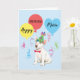 Happy birthday greetings with this design featuring a cute, party hat-wearing Bull Terrier puppy surrounded by colourful balloons and streamers. Name can be easily changed; just click on personalize button.