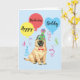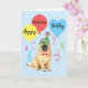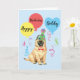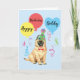 Happy birthday greetings with this cute design featuring a smiling, party hat-wearing Belgian Tervuren puppy surrounded by colorful balloons and streamers. Name can be easily changed; just click on personalize button.
