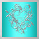 Elegant teal blue silver heart sweet sixteen birthday party poster.