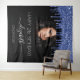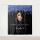 A tapestry for a girly and glamourous 21st (or any age) birthday party. A black background with navy blue faux glitter drips. Personalize and add your own high quality photo of the birthday girl. The text: The name is written with a modern hand lettered style script with swases. To keep the swashes only delete the sample name, leave the spaces or emoji's in front and after the name. Tempates for a name, age 21 and a date. Can be used as wall decor for the party or as a photo booth backdrop.
