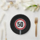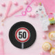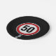 Red round traffic speed sign with a modern graphic style. Customise your age for the perfect cars and drivers themed birthday party.