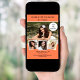Create your own unique photo collage. Use four, 4 of your favourite photos. Personalize and add a name and party details. A coral, orange coloured background, black text.
